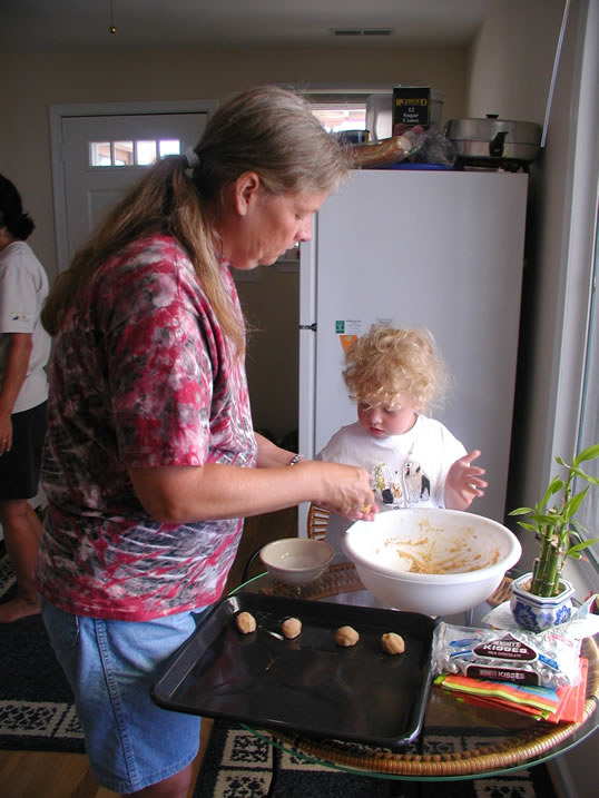 Trace and Payson making cookies.