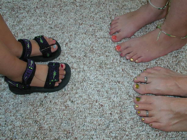 Barb's nail polish in action - Payson, Maggie, and Trace showing off their toes