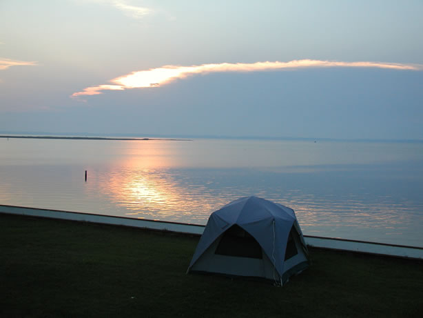 Sunset and our tent on the lawn