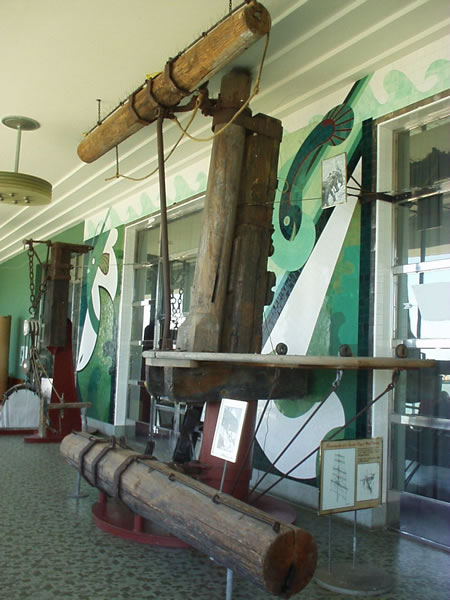 This is on the balcony of the Maritime Museum. I had always thought of those cross beams on the masts of the tall ships as slender poles. Until I saw this, I had never grasped that they would have to be the diameter of good-sized logs. The next image shows where these pieces were located on the ship.