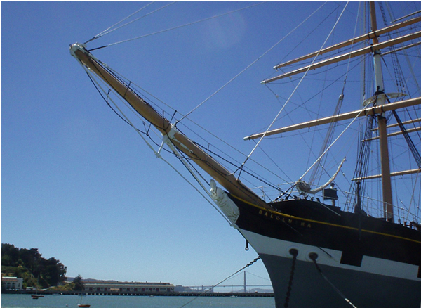 Another of the historic boats on Hyde Street Pier is the Balclutha, an iron-hull square rigger built in 1886.