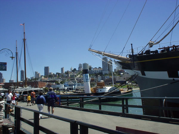Hyde Street Pier with the wooden sailing ship, C.A. Thayer. (
