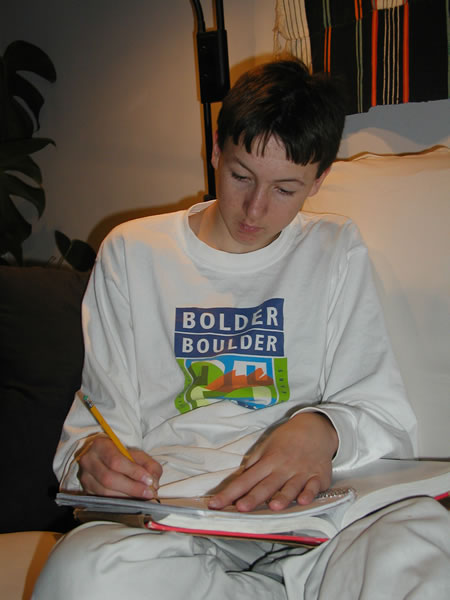 Tote doing his homework before more guests arrive.