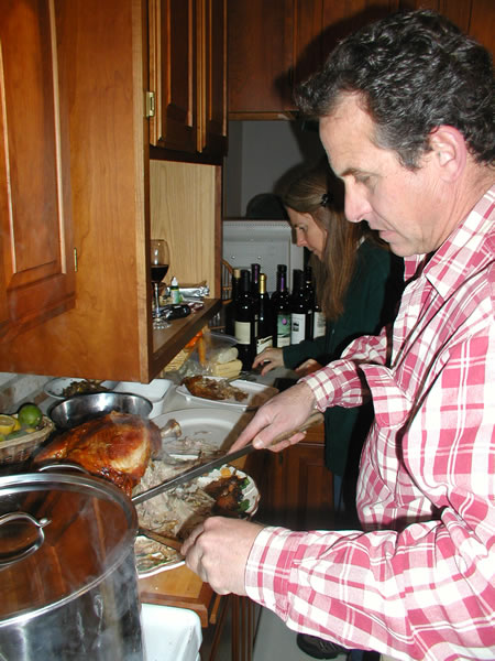 Tico carving the turkey & Mary carving the cheese.