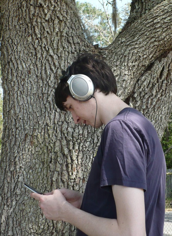 Sunday, March 27, Gainesville, Florida: Tote listening to his book on tape – the Gormenghast series by Mervyn Peake