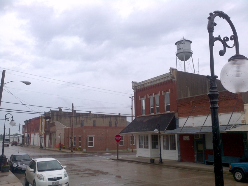 Ash Grove. Two restaurants, a little museum, a music store, and lots of storefronts for sale.