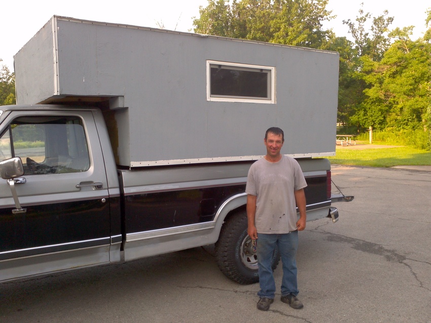 The gentleman works at a golf course in St. Louis. He built his camper himself -- perhaps you can tell. This camper replaces one that he purchased.
