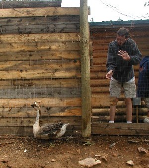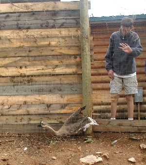 That did it. The goose might look tough, but it was really a chicken. She made a desperate but futile dash for freedom. We had it red-handed or flat-footed or something like that.