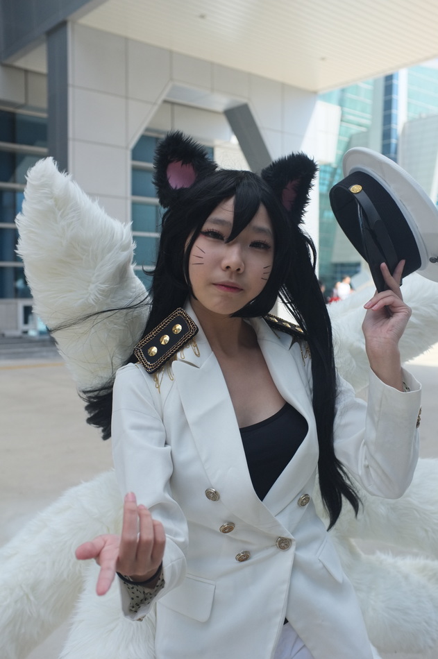 Either a cosplayer dressed as an anime character or well-dressed escapee from an asylum.