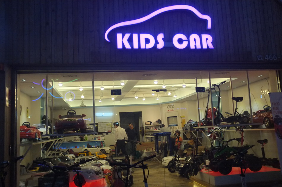 Every kid needs a battery-powered car. We saw a couple of these shops.