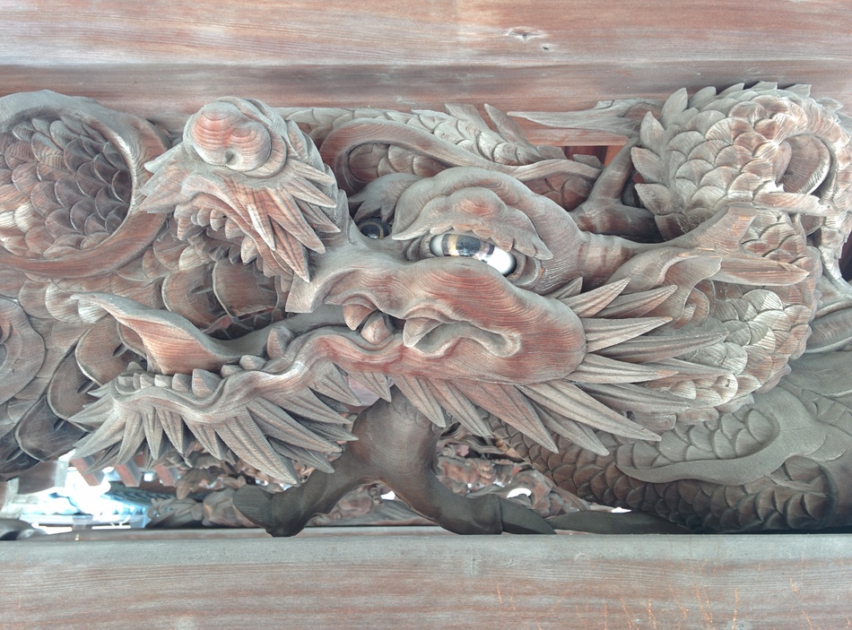 Dragon on a stunning carved pergola.