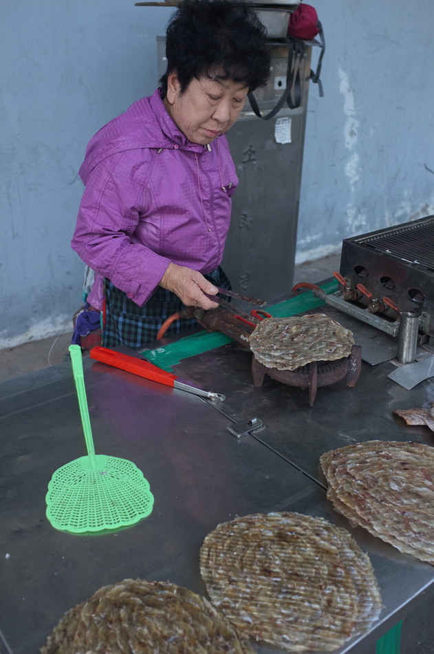 One of the outside-the-park vendors making take-in snacks. What's a baseball game without roasted, pressed dried fish?