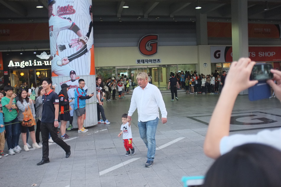 After the game, the fans line up in front of the stadium and the players walk through them as they leave. Rather nice, I think.