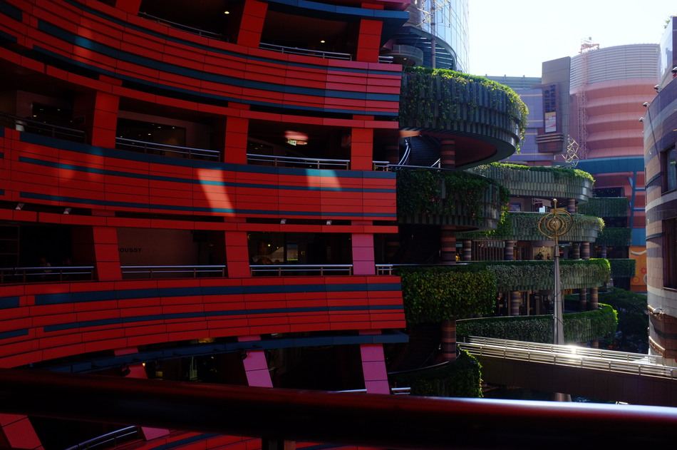 Canal City -- an interesting building housing a shopping mall. Often shopping malls are in interesting buildings here.