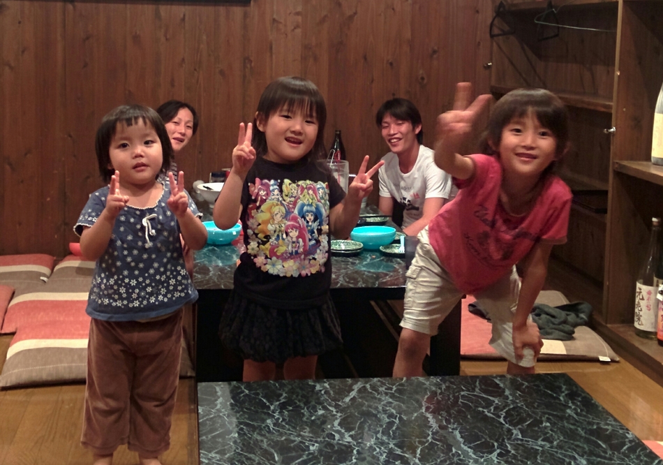 A family in the ramen place. Sayaka noticed that the girl on the left had cut her own hair.