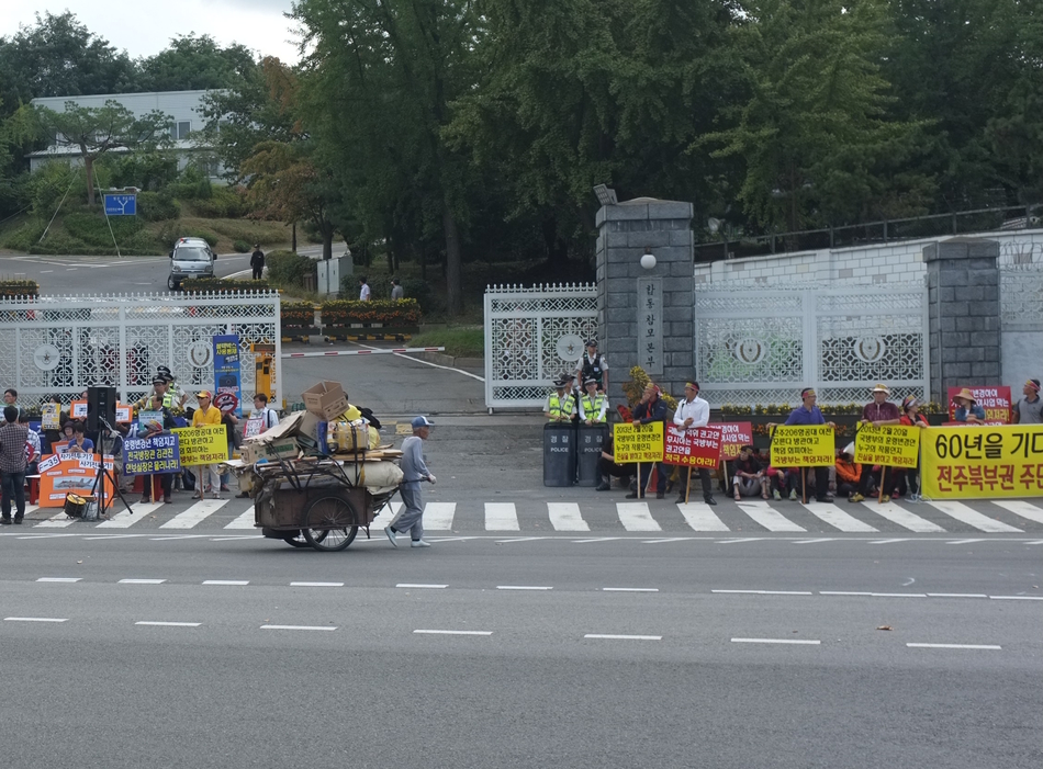 Across from the War Memorial, a protest against the purchase of F-35s fighters from Lockheed.