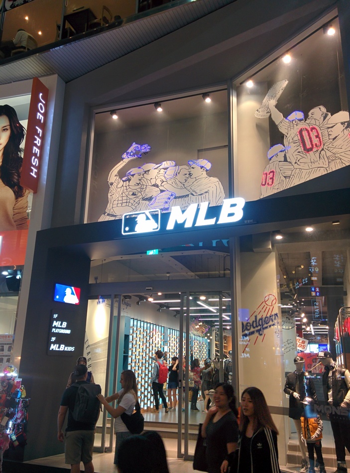 I've never seen an MLB shop and this one was entirely about MLB fashion. Crystal-studded baseball caps, etc.