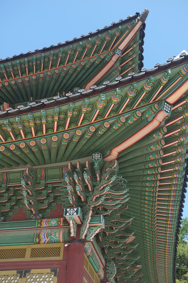 A corner of Injeongjeon Hall. The third and last time it was rebuilt was in 1804, but the whole palace was restored in the early 90s.