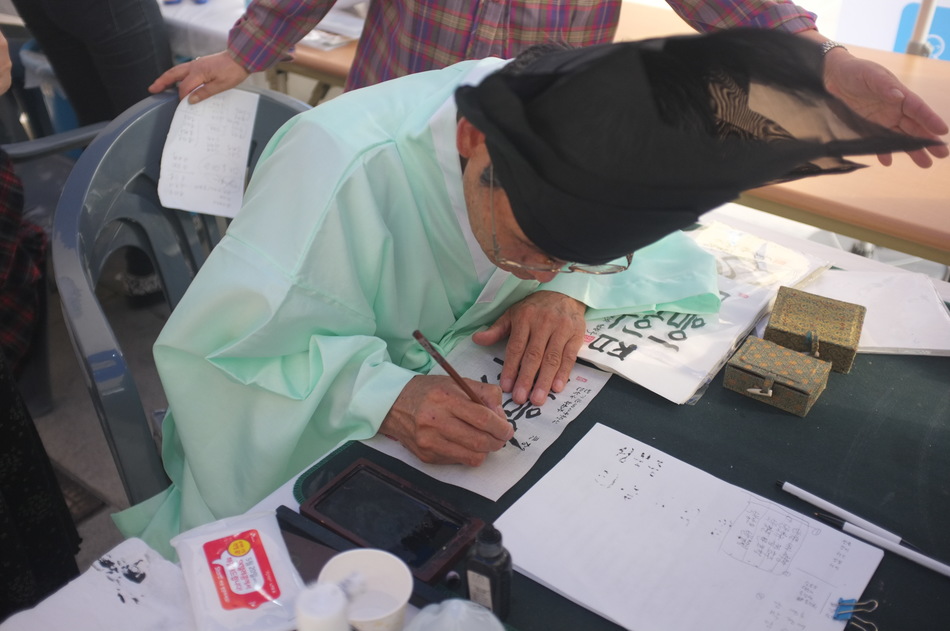 This "scribe" was part of a printing trade fair. He did our names at Monica's request.