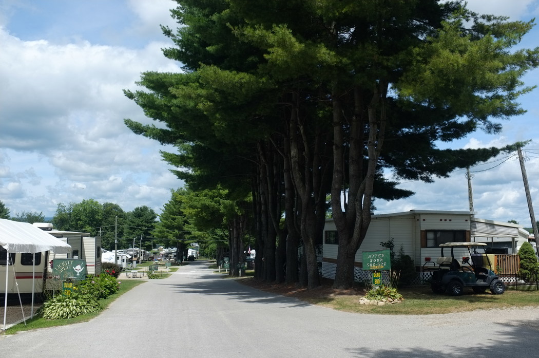 Two swimming pools, a stocked fishing pond for kids, innumerable craft and game activities for kids run by the staff, a bar, snack bar, store, etc. Events were announced over the camp PA. (Monica felt she was too old to go to the fingernail painting activity, but she was tempted.)