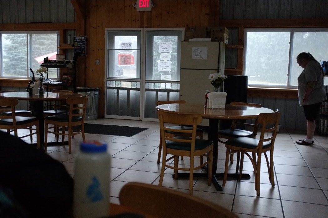 This is an example. After we set up camp, showered, and were relaxing inside the camp shop/bar, a downpour struck.