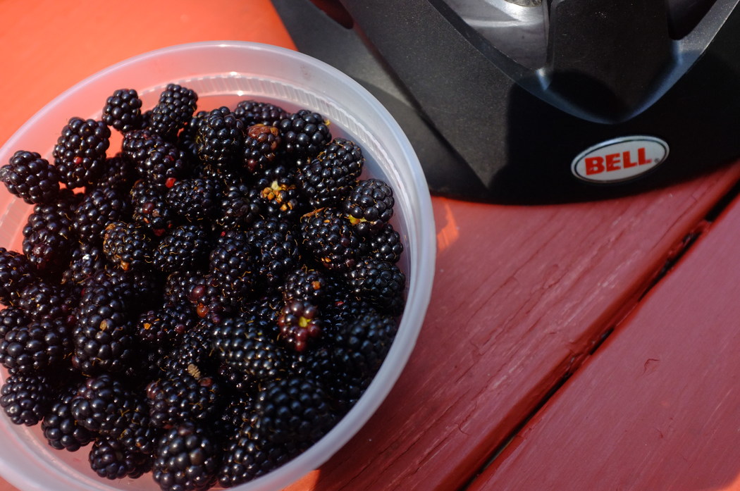 On the way to Yankeeland Campground we stopped at a market to pickup food and found containers of local blackberries mixed in with the standard commercial containers. The berries were great.