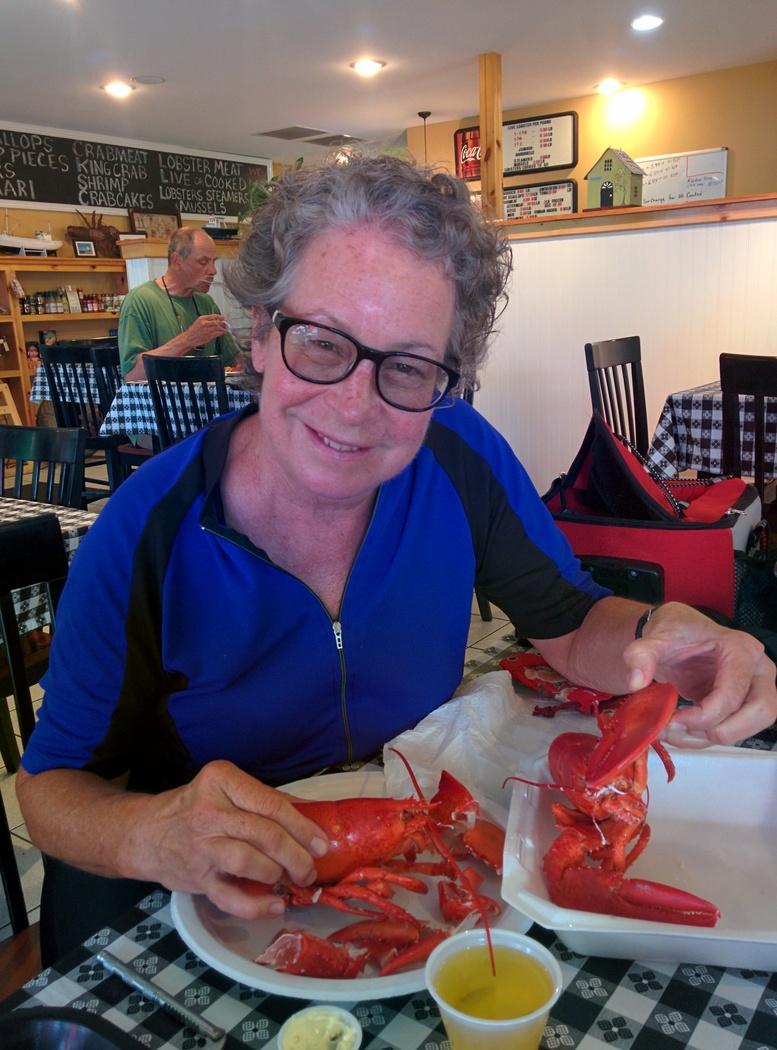 Portland! Monica celebrated the end of the cycling part of our trip with two lobsters for lunch.
