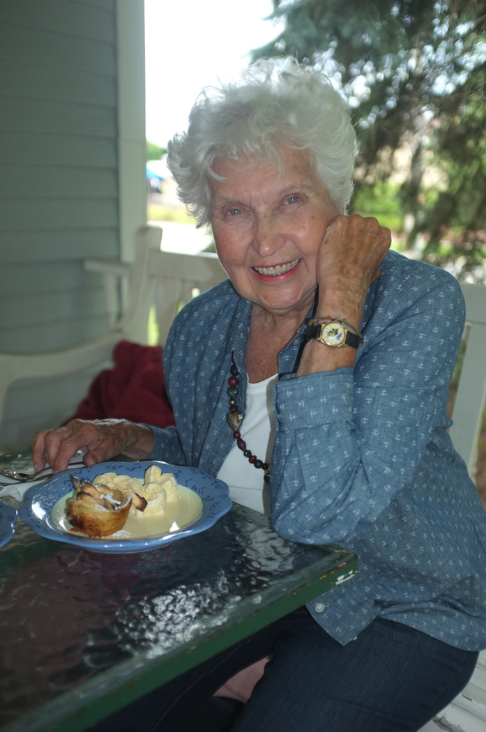 Mark's mom with "Rose Apple" dessert. Or maybe "Apple Rose."