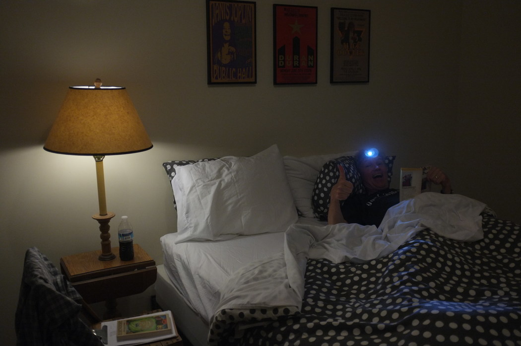 The borg man reading by headlamp. Does anyplace have good reading lights any longer?