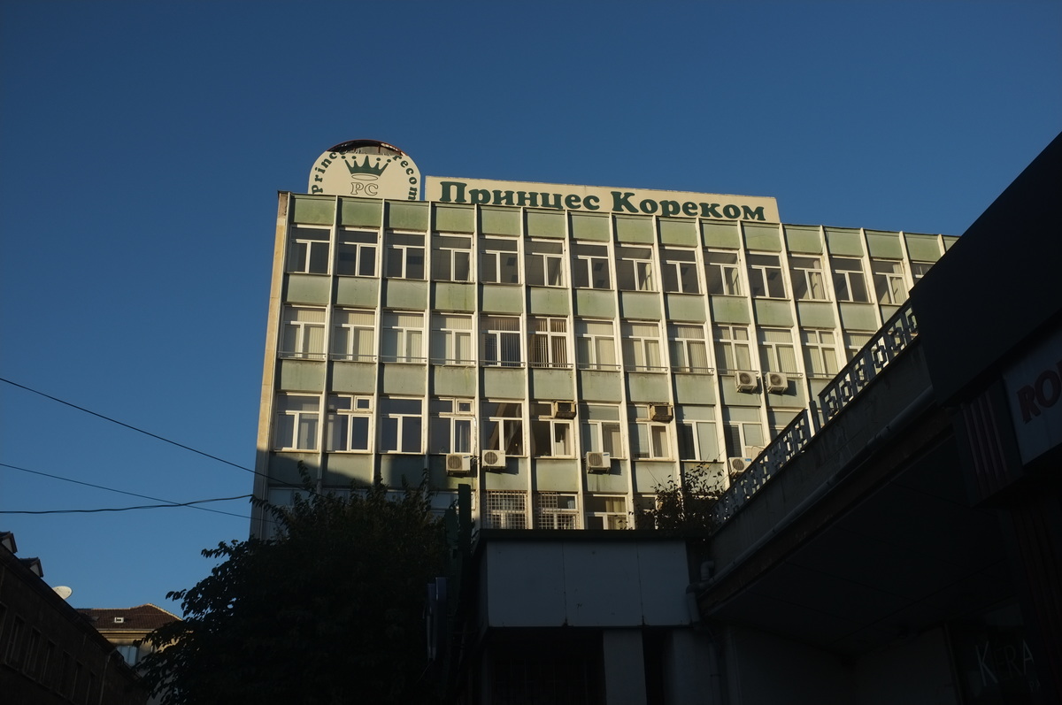 This building is the former headquarters of Corecom. The only places in Bulgaria where a person could buy Western goods. All purchases had to be in hard currency. So Bulgarians would change money on the black market in order to make purchases here.