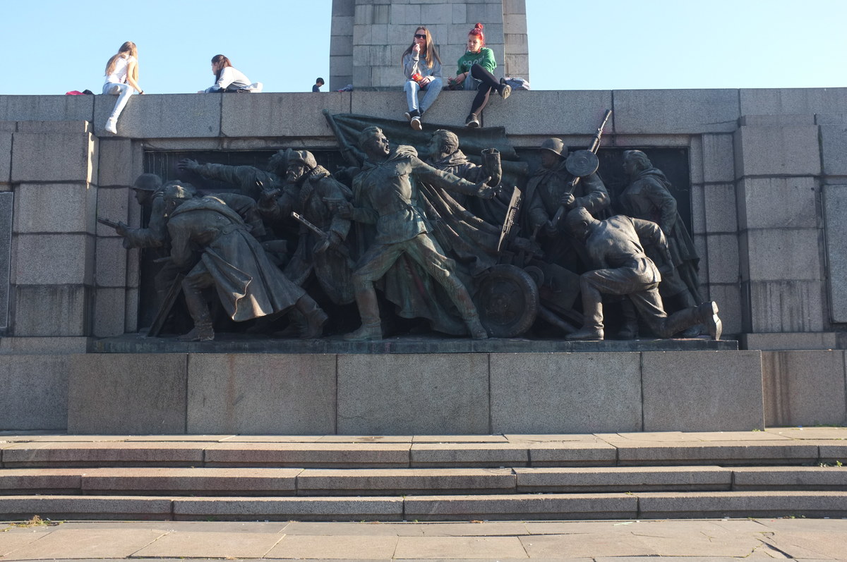 A relief panel on the side of the Monument to the Red Army. The next photos show how it has been used for parodies and protests.