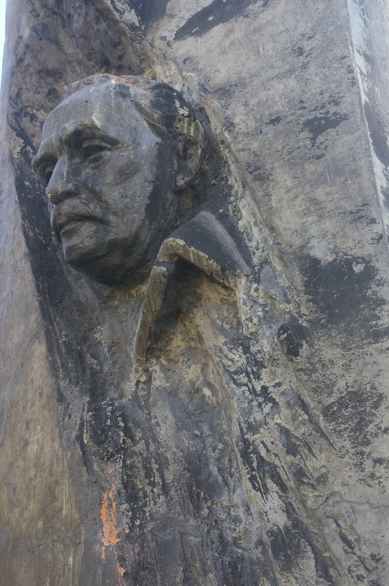 This is one of several sculptures depicting Georgi Dimitrov, the first leader of Bulgaria's communist party. In the propaganda films we watched Dimitrov is treated as the father of the country, assuming a role like that of George Washington.
