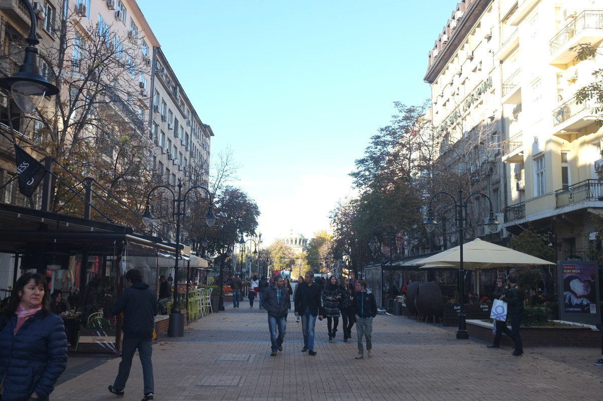 Vitosha Boulevard. Once a major trade street, now it is lined with cafes and clothing stores. It's where cool people like Monica and me hang out.