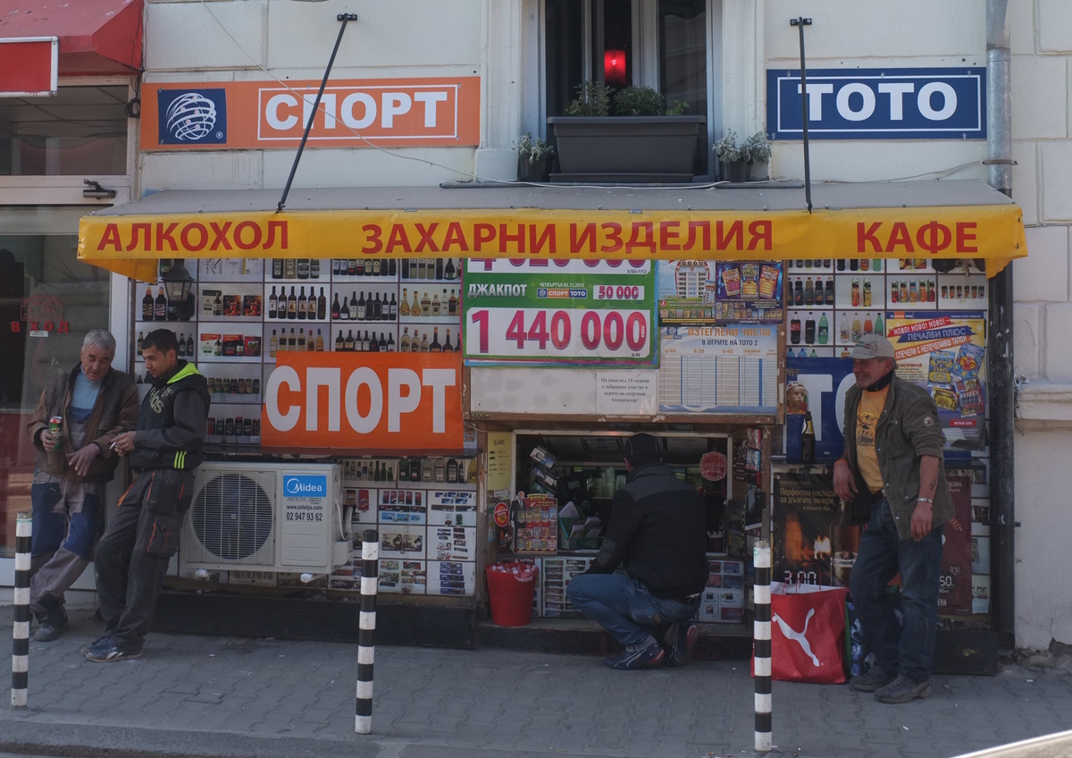 This is a "stoop shop." According to Elitsa, after the fall of communism, people could start their own businesses, but retail space was expensive. Apartment dwellers realized that they had storage space in the basement of the their buildings, so some of them started selling things from the basement. Voila, the stoop shop was created. They are also called "knee shops." More pictures.