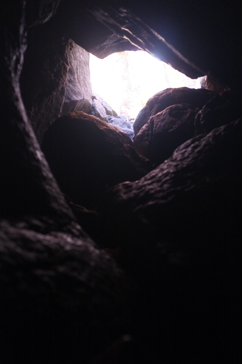 Legend has it that if you can climb out of this small hole in the top of Ivan's cave, you are without sin. Monica made it.
