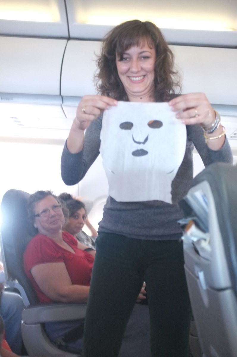On our Air Bulgaria flight from Sofia to Madrid, two women gave passengers facials. The women took before and after photos. Monica really wanted to have her face done, but the women said that Monica's skin was so perfect, they could do nothing to improve it.
