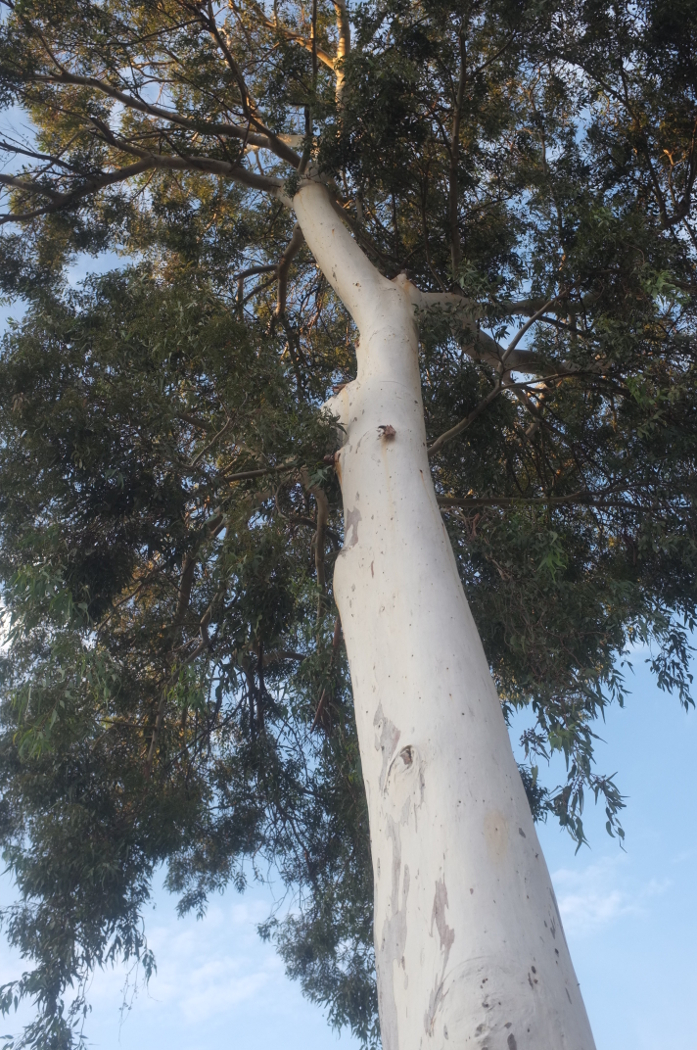 Eucalyptus trees line much of the road to the beach..