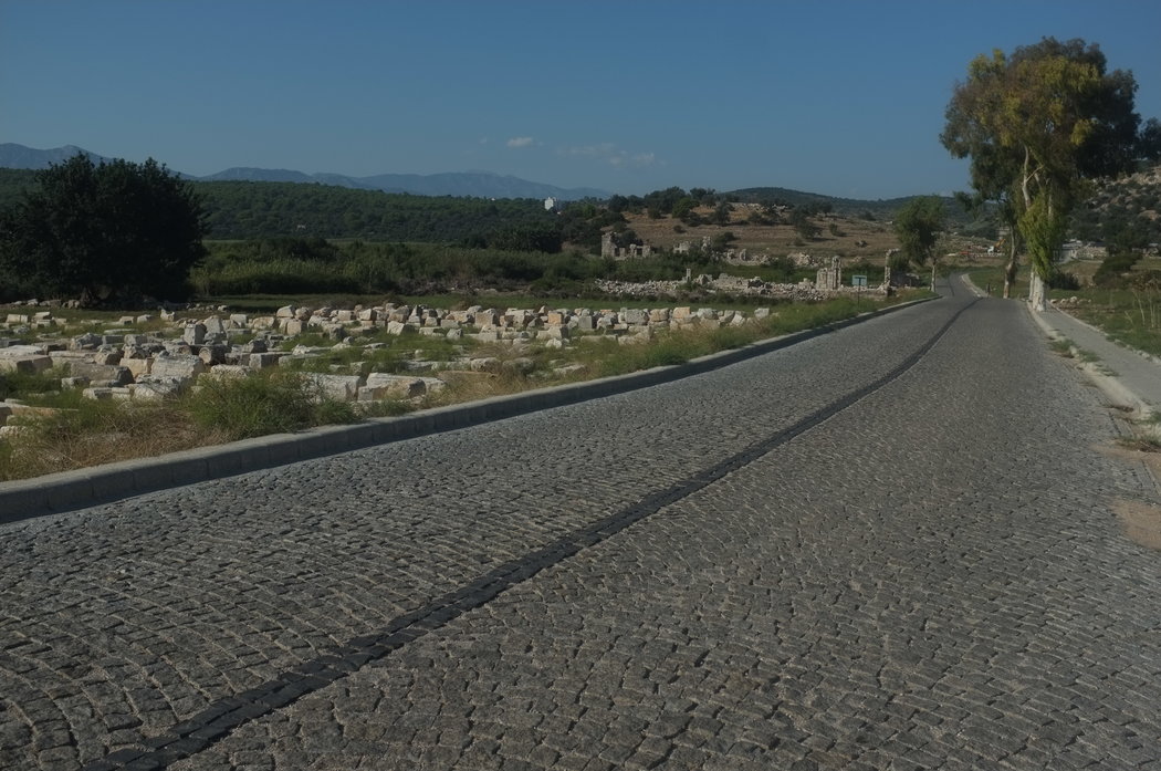 The road to the beach passes through the ruins of ancient Patara. There are vans that run up and down the road if one needs a lift, but we walked.