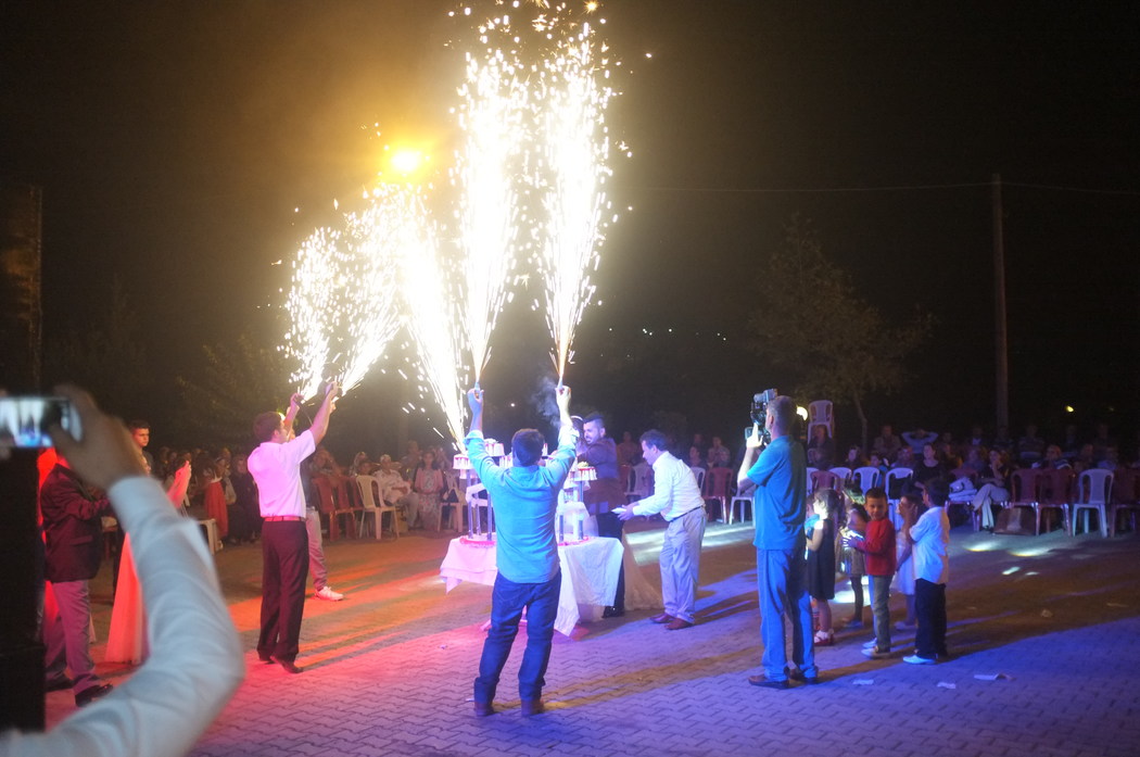 These are not the fireworks. These are tiny sparklers lit for the cake cutting.