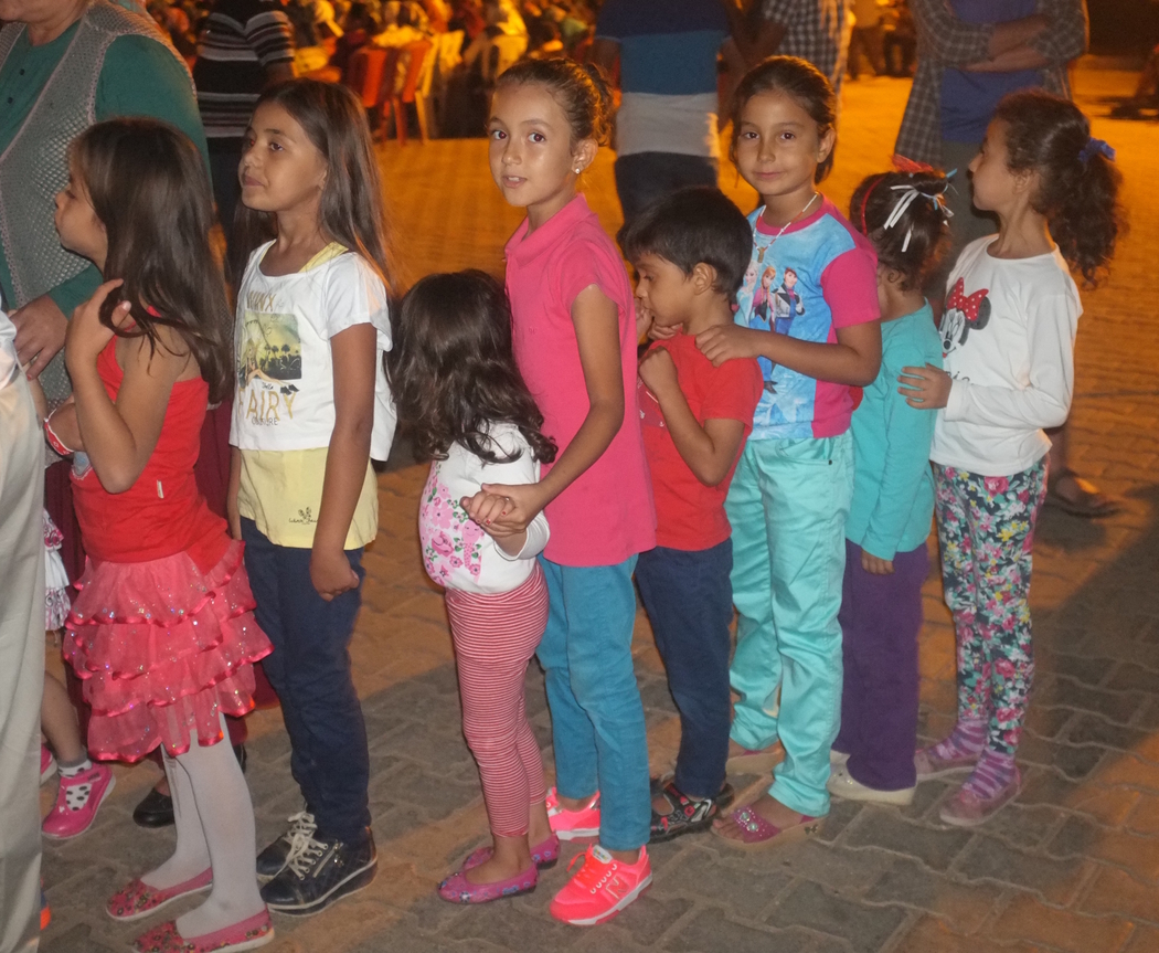 The line for cake. As you can see from the girls' dress, everyone was welcome.