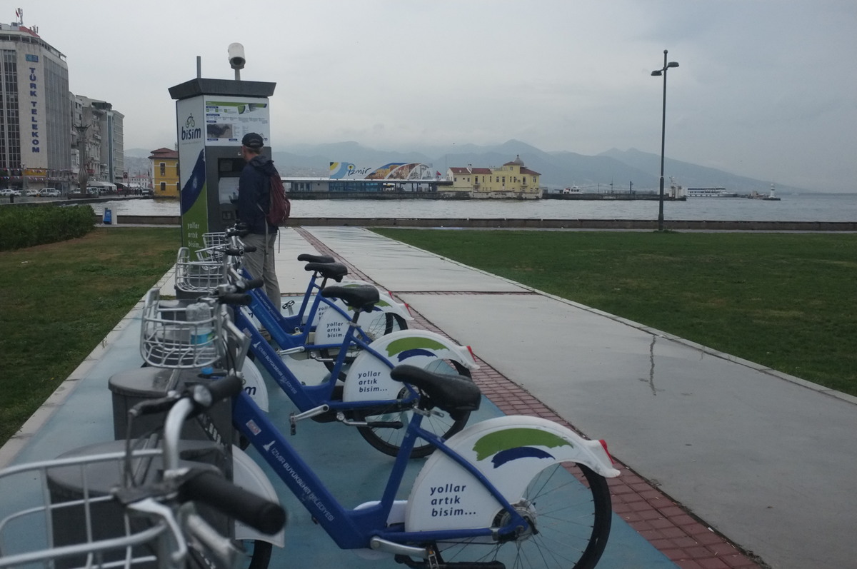 Bike share. There are many stations along the Kordon. Antalya also had a bike share program.
