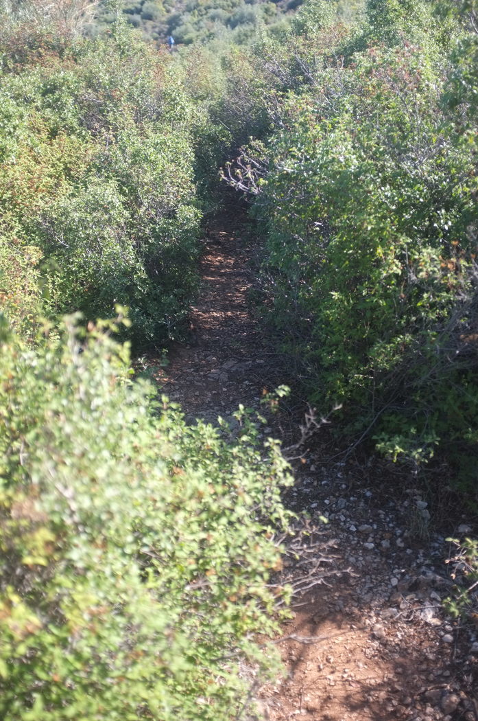 Our path, unfortunately, went through lots of tight scrub festooned with pointy leaves. Not bad once I put on long pants, but a reminder that the path is not maintained.