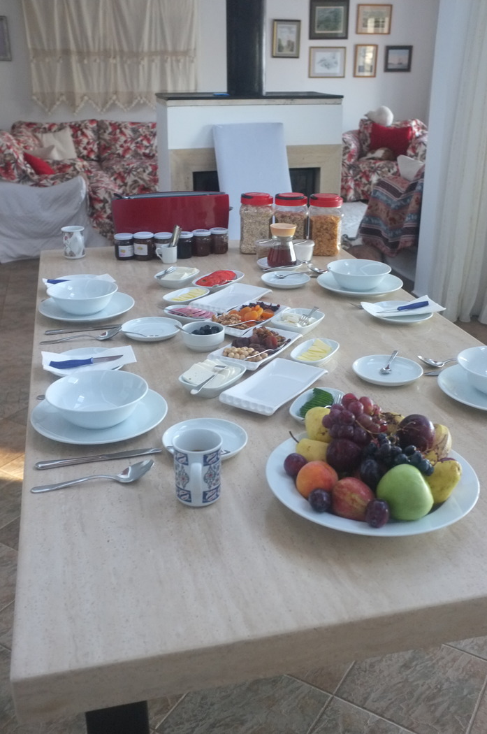 Breakfast at the B&B included cereal, six kinds of homemade jam, and three kinds of cheese.