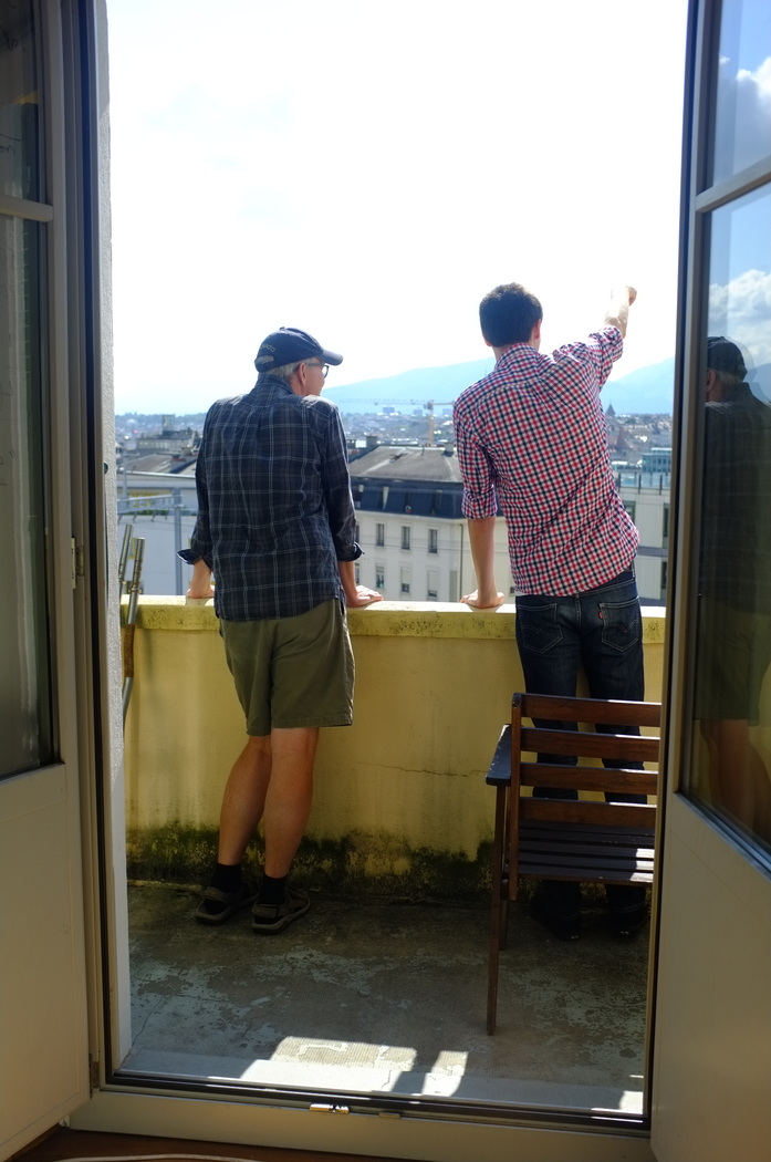 Great view of Geneva. In the background, are mountains in France; in the foreground, the old city, the water jet, and cathedral.