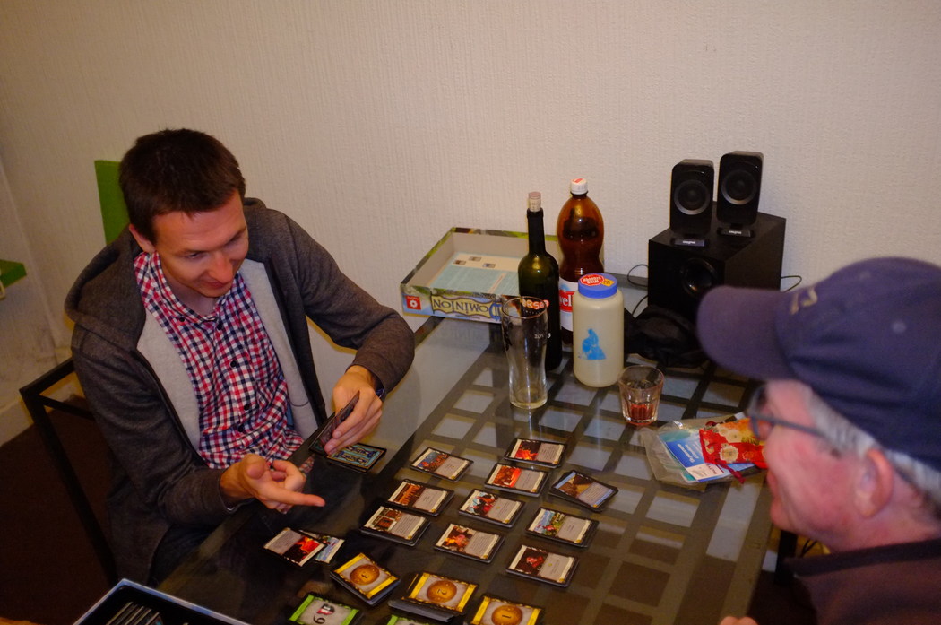 Unsatisfied with beating me in go, Tote taught me how to play Dominion so he could beat me again.