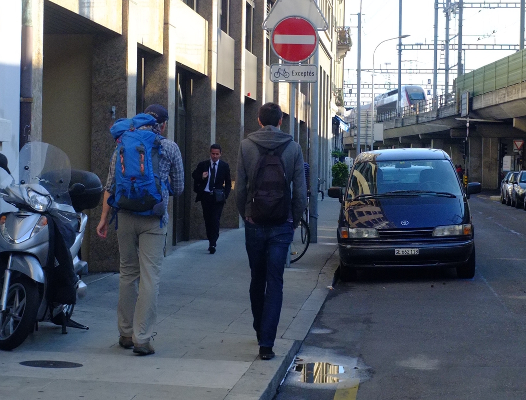 Before we can get to Istanbul, we need to get to the Geneva airport. Tote and I appear to be passing our Previa. (Geneva has lots of "Previas," though with a different name.)