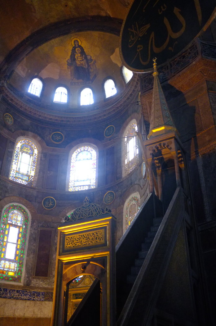 A juxtaposition of some Christian and Islamic bit and pieces. The Virgin and Child mosaic is in the apse, above the spot that once held an altar.