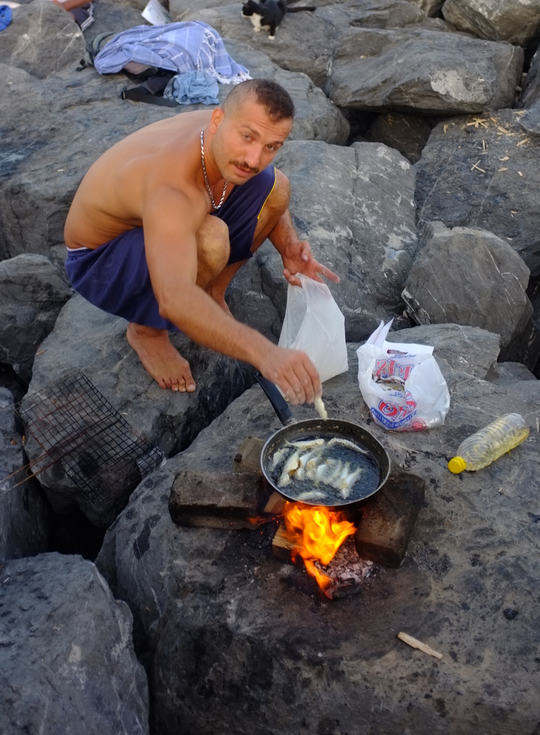 There were lots of fishermen along the shore. They are there to catch hamsi, black sea anchovies. This fellow is cooking up a pan full. He offered us some.