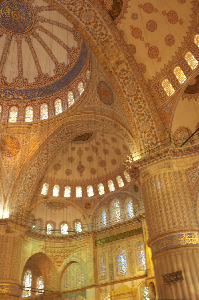 Inside the Blue Mosque. The mosque was completed in the 1600s and is actually called Sultan Ahmed Mosque. The blue color of the Iznik tiles that line the inside is what gives the mosque its nickname.