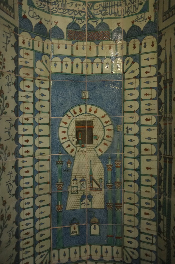 The mihrab in the Guards' mosque, with a depiction of the Kaaba in Mecca.